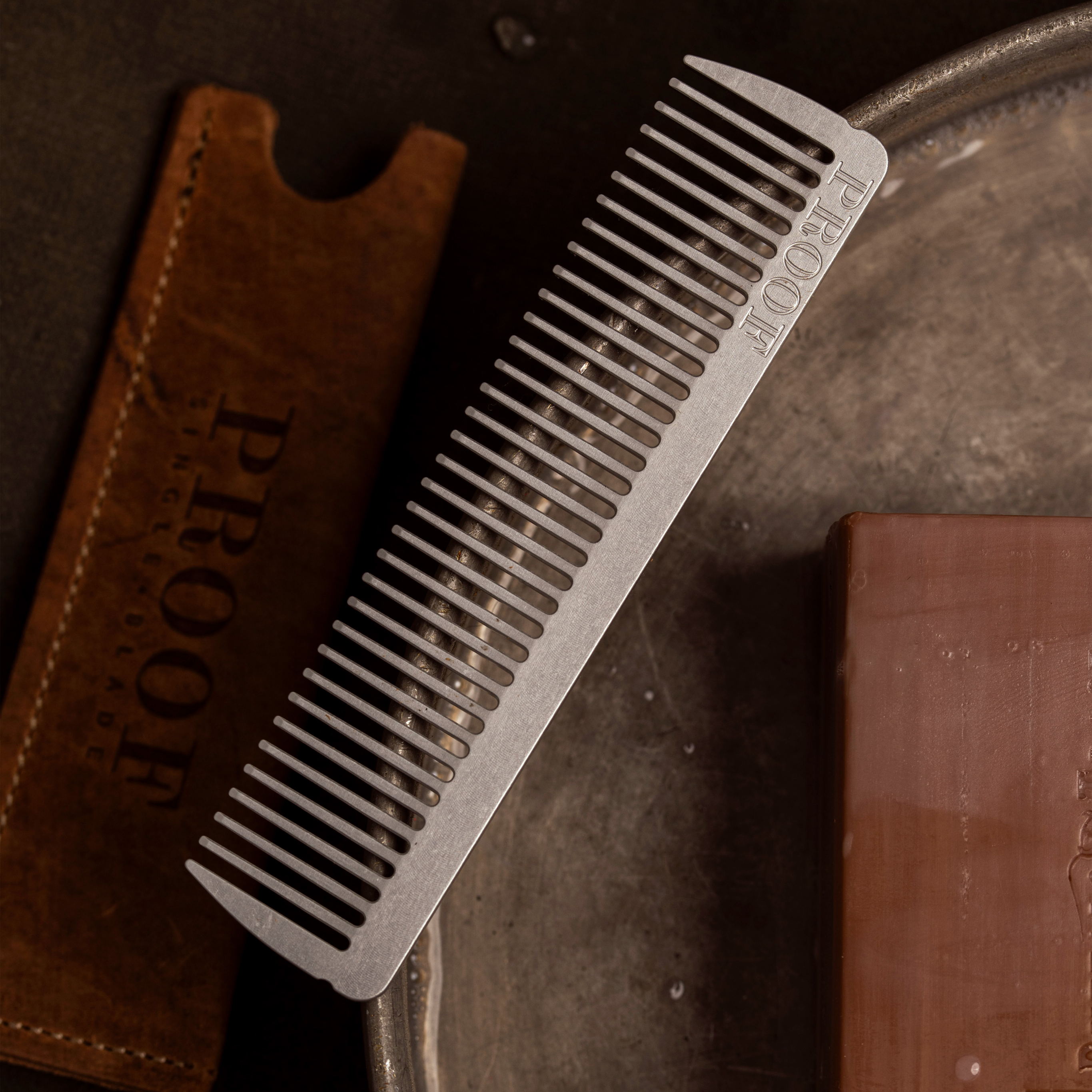 Most combs are stamped from plastic and tossed after a year or two. This comb is built to last. The Proof Comb is CNC-machined from a solid billet of 6061 aluminum, giving it a weighty, durable feel you won’t find in stamped plastic or cheap metal.