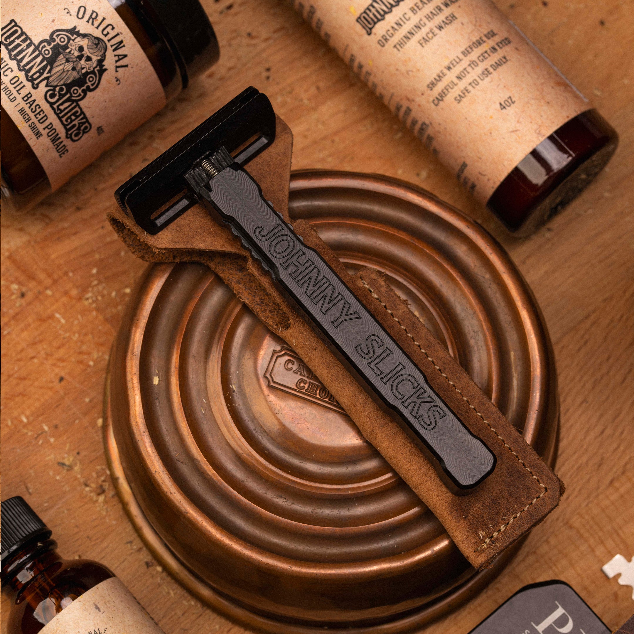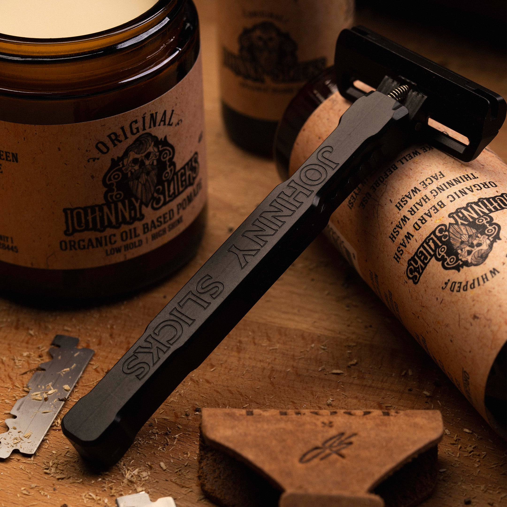 Pair this razor with Johnny Slicks products and you’ve got a grooming kit with backbone—made by people who take pride in the details.