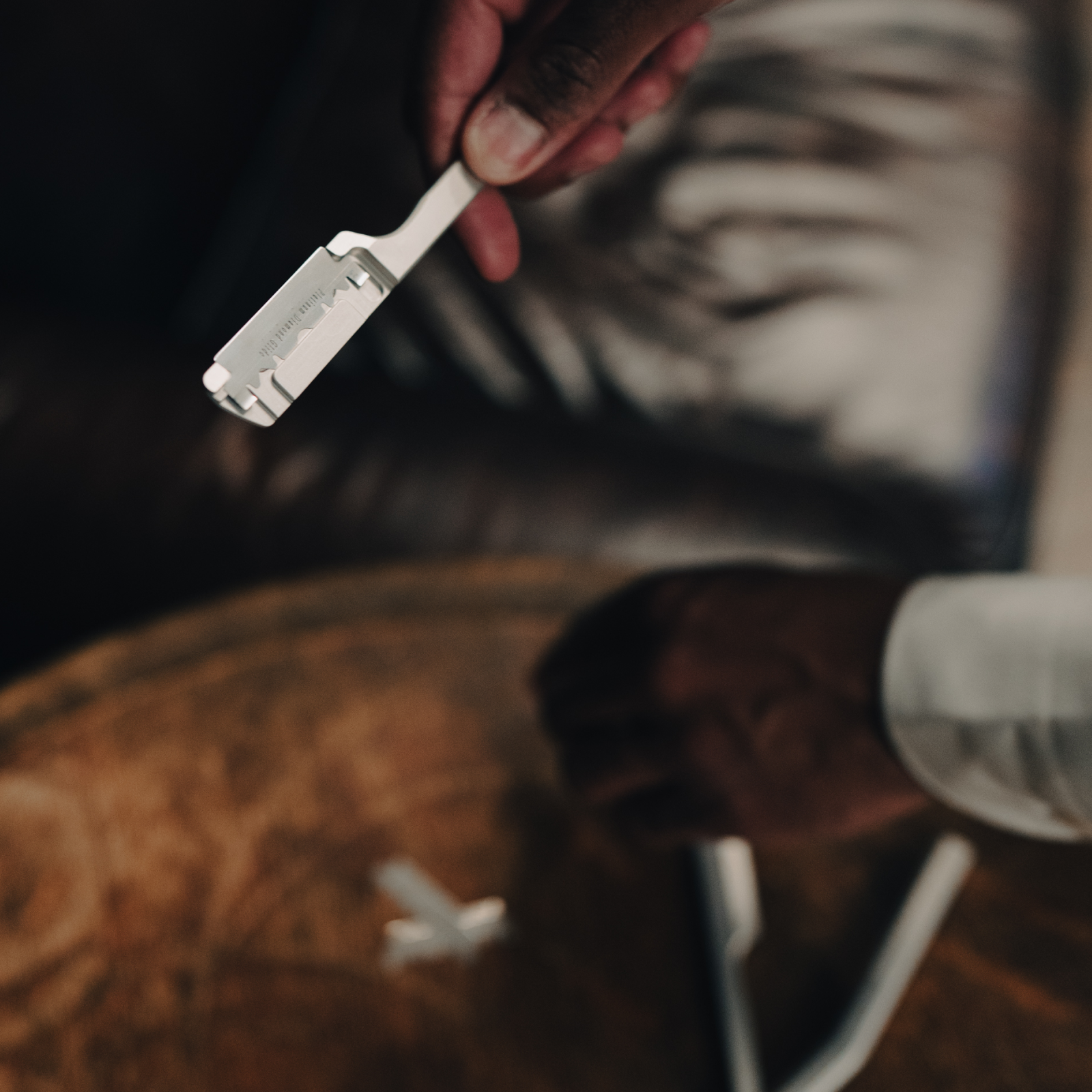 Built for precision, ritual, and slowing things down. Solid metal construction, a new scalloped edge, and a balanced in-hand feel that delivers barber quality shaves in the comfort of home. This tool is used daily by barbers across the nation, and now its made in the USA.