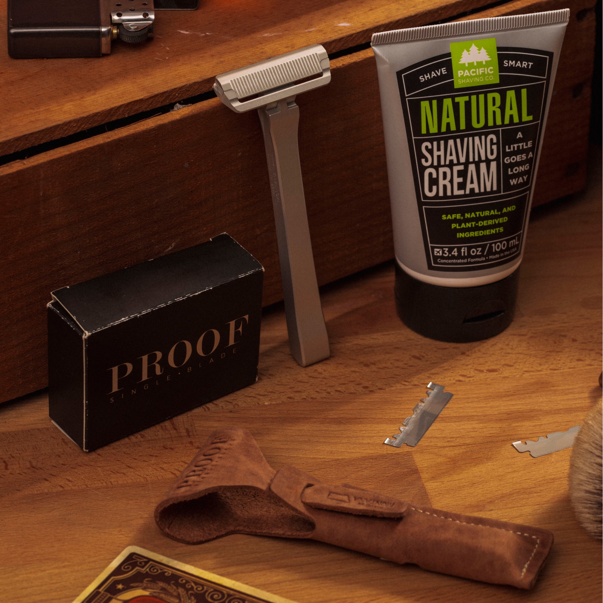 The Proof Starter Shave Kit has everything you need — now with a grooved razor cap for optimal flow-though and a clean, smooth shave every time. Made in the USA, built to work hard and last a lifetime.